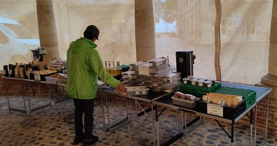 "Etes-vous déjà venu au marché d’Auvillar ? Non ! Et pourtant il existe depuis 1996 chaque dimanche matin sous la magnifique Halle circulaire ! Dans ce lieu magique chargé d'histoire, vous trouverez en plus de la bonne humeur qui y règne, l’essentiel pour composer votre menu : fruits et légumes, charcuterie, boucherie, volailles fermières, conserves de canard, plats cuisinés, pain et pâtisseries, fromages, miel, vins. Mais aussi des produits d'hygiène et d'entretien. Et si vous voulez faire un grand plaisir à votre compagne, un bouquet de fleurs vous attend chez le fleuriste. S’il est déjà midi et que le temps manque pour préparer votre repas, quatre restaurants seront heureux de vous servir.